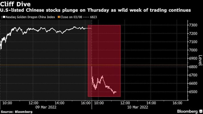 Las acciones chinas que cotizan en EE.UU. se desploman un 10% tras el salvaje recorrido en Asia