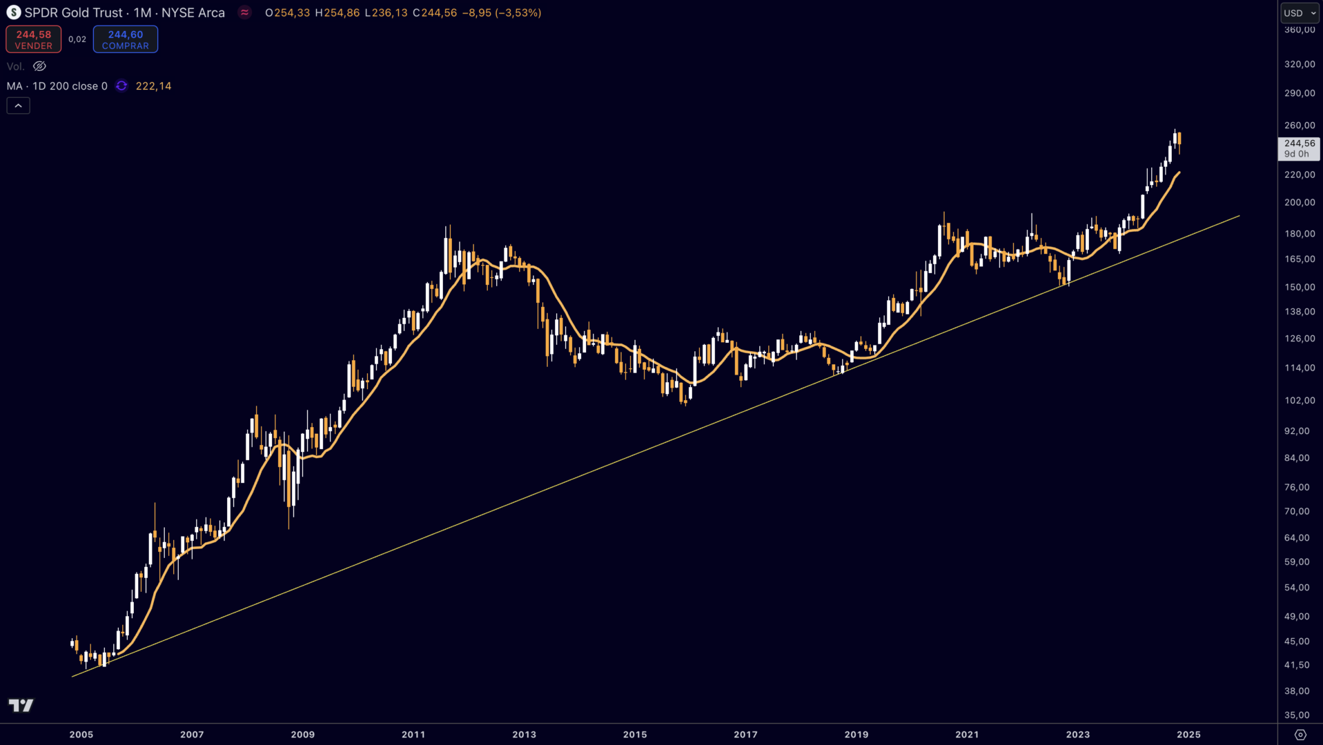Para los inversores interesados en aprovechar los movimientos del precio del oro, existe un instrumento financiero eficiente: el SPDR Gold Shares ETF (GLD). Este activo, listado en las principales bolsas del mundo, replica el precio del oro y permite a los inversores obtener exposición al metal sin necesidad de poseerlo físicamente.