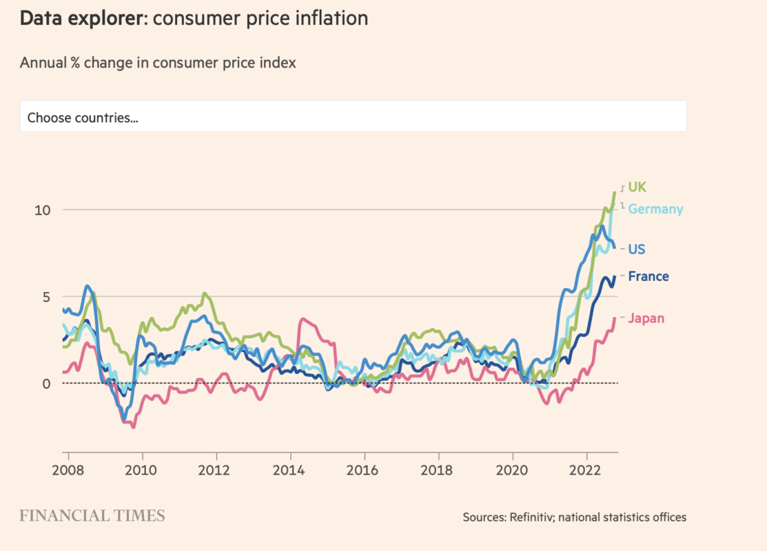 La inflación en EE.UU. cayó más de lo previsto en octubre y la mayoría de los economistas prevén que el ritmo de crecimiento de los precios alcanzará su punto máximo este trimestre en el Reino Unido, la eurozona y Australia. Los economistas encuestados por Reuters esperan que la inflación de la eurozona se sitúe en el 10,4% en noviembre, cuando se publiquen los datos el miércoles, lo que supone un descenso respecto al 10,6% del mes anterior.