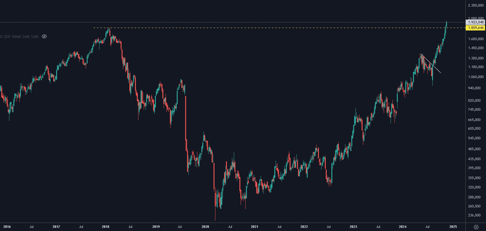 El índice Merval, medido en dólares, continúa marcando hitos históricos. En su visión semanal, alcanzó recientemente un nuevo récord de 1.950 dólares, superando los 1.820 dólares registrados en enero de 2018, durante el gobierno de Mauricio Macri. Este desempeño coloca a la Bolsa argentina como la más alcista del mundo en los últimos tres años, con un impresionante incremento acumulado del 428% en dólares.
