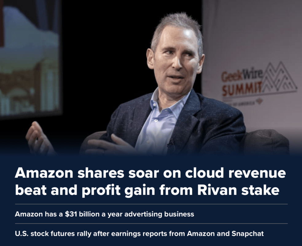 La gran ganancia de beneficios de Amazon en Rivian es el resultado de la salida a bolsa del fabricante de vehículos eléctricos en noviembre. El beneficio por acción, incluida la ganancia de Rivian, fue de 27,75 dólares en el trimestre.